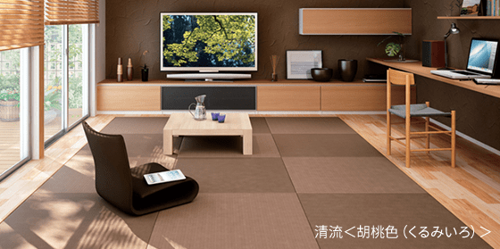 空間にマッチする豊富なカラーバリエーション。木質フローリングにフィットする8色をご用意。リビングの畳コーナーなどに最適な畳おもてです。 |
