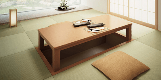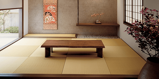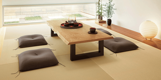 縁がないため圧迫感がなく、正方形を活かして市松に敷いたり、置き畳にして洋間のアクセントにするなど、デザイン性にこだわった和モダンな空間を演出できます。